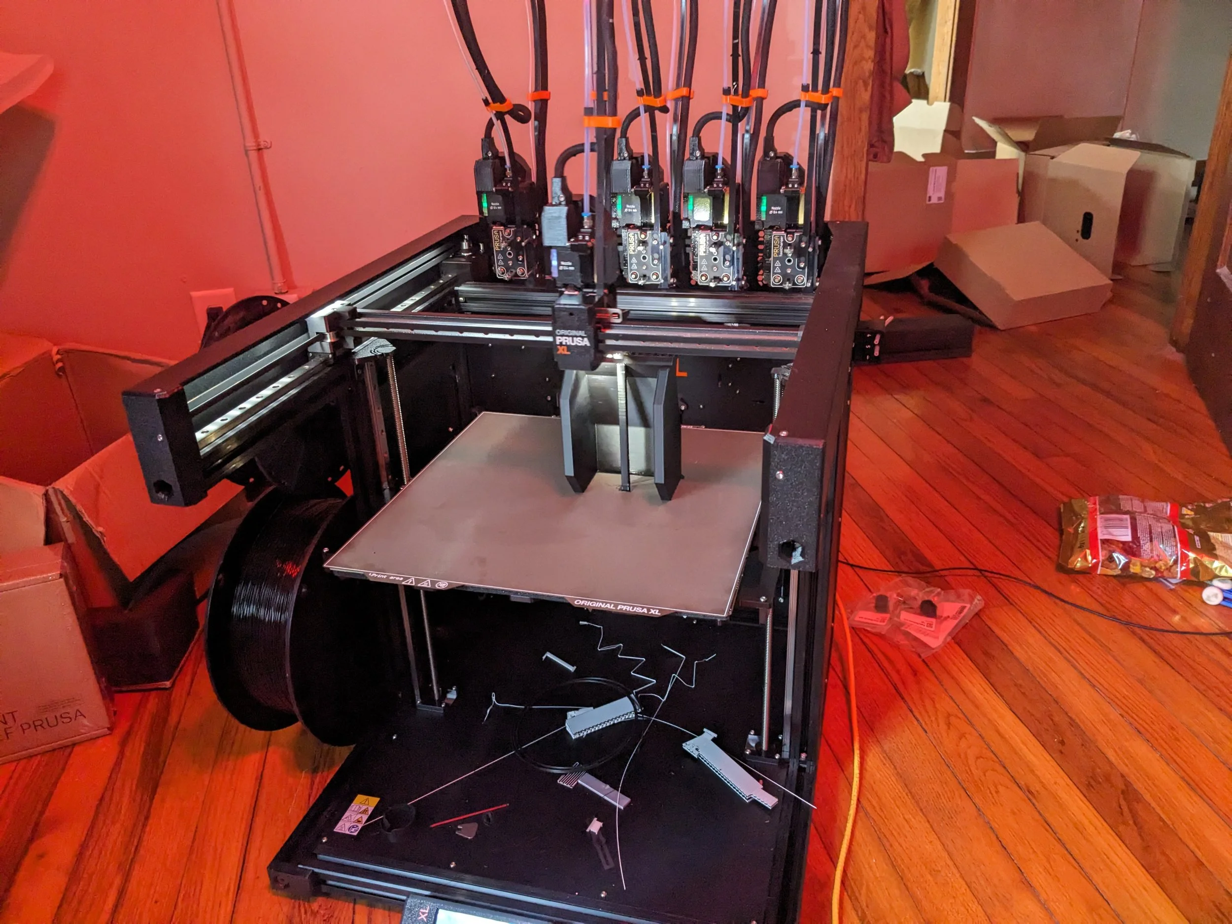 I recently added a Prusa XL from Prusa Research to my workshop, and it is quickly becoming my go-to printer. The XL features a very large print bed, up to five individual quick-switch tool heads, and load-cell based bed leveling. The print area on the XL is large enough to produce a full size helmet in a single print, instead of needing to split it into parts, which is very exciting for future projects. It also has some other benefits such as the fact that the nozzle moves in both the X and Y axis, rather than moving the bed.